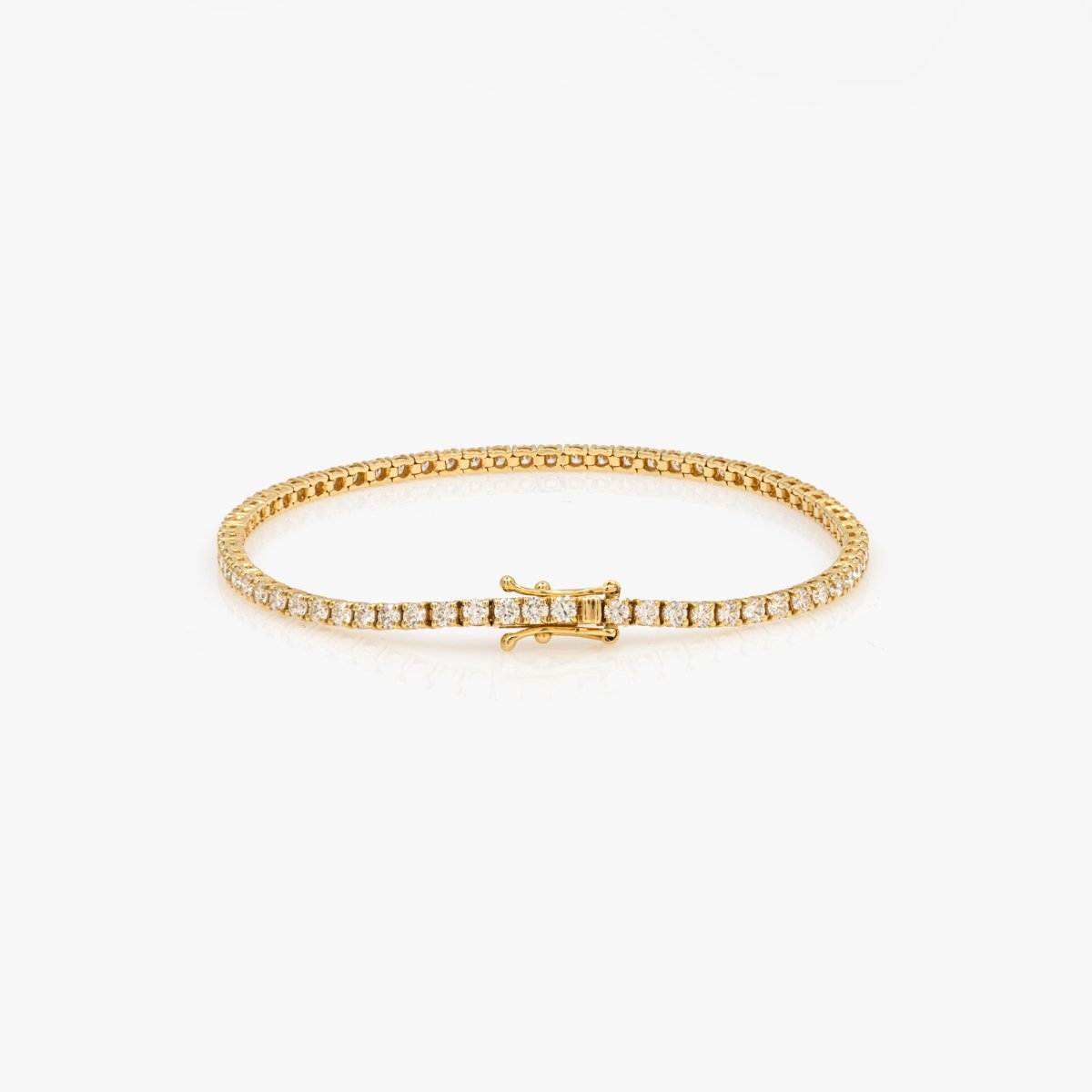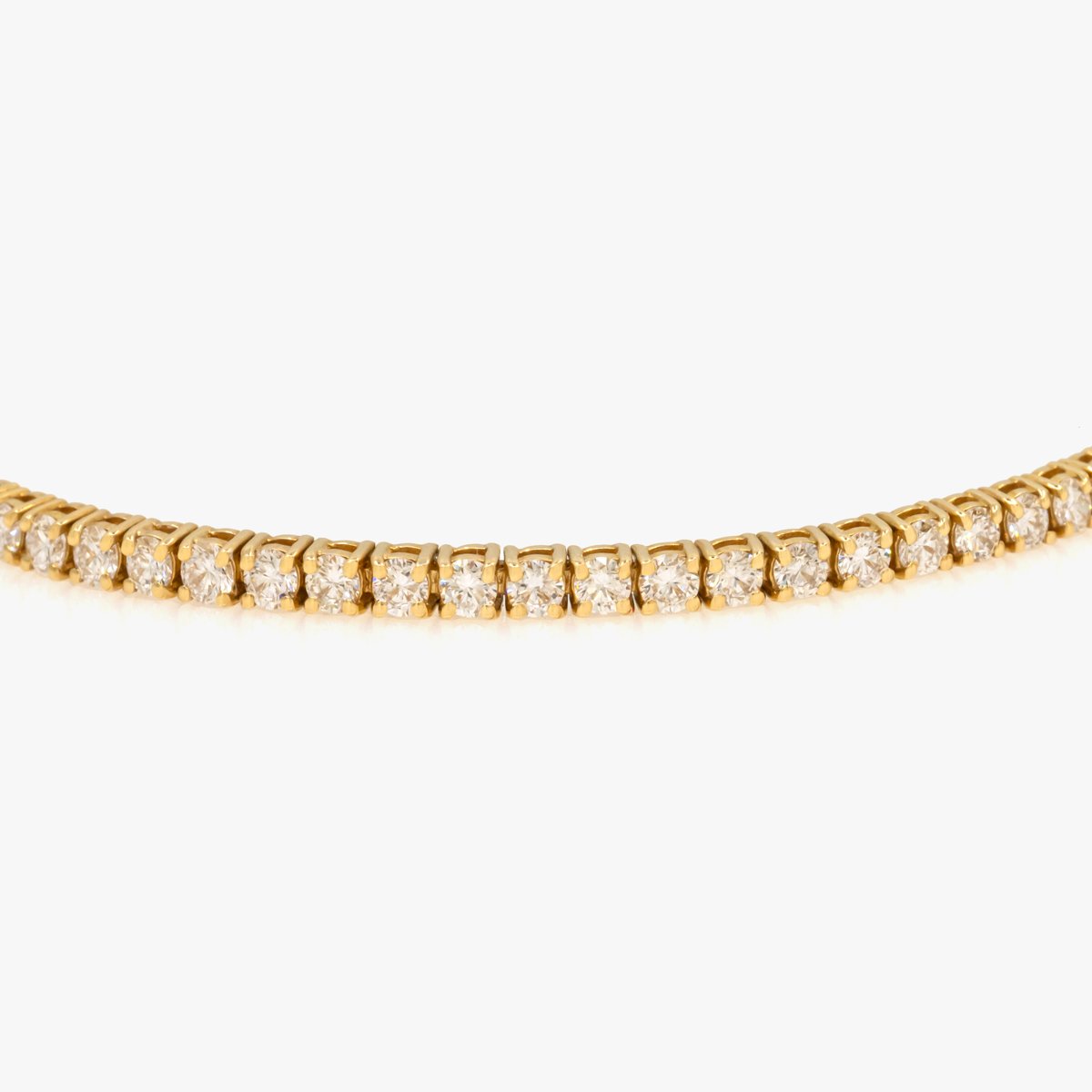 A classic round-shaped tennis bracelet crafted in 18kt yellow gold, adorned with fine-quality natural diamonds. Each diamond above 0.4 carats is GIA Certified, available in F, G, and H colors with VS+ clarity. This piece is a radiant blend of timeless elegance and modern sophistication.