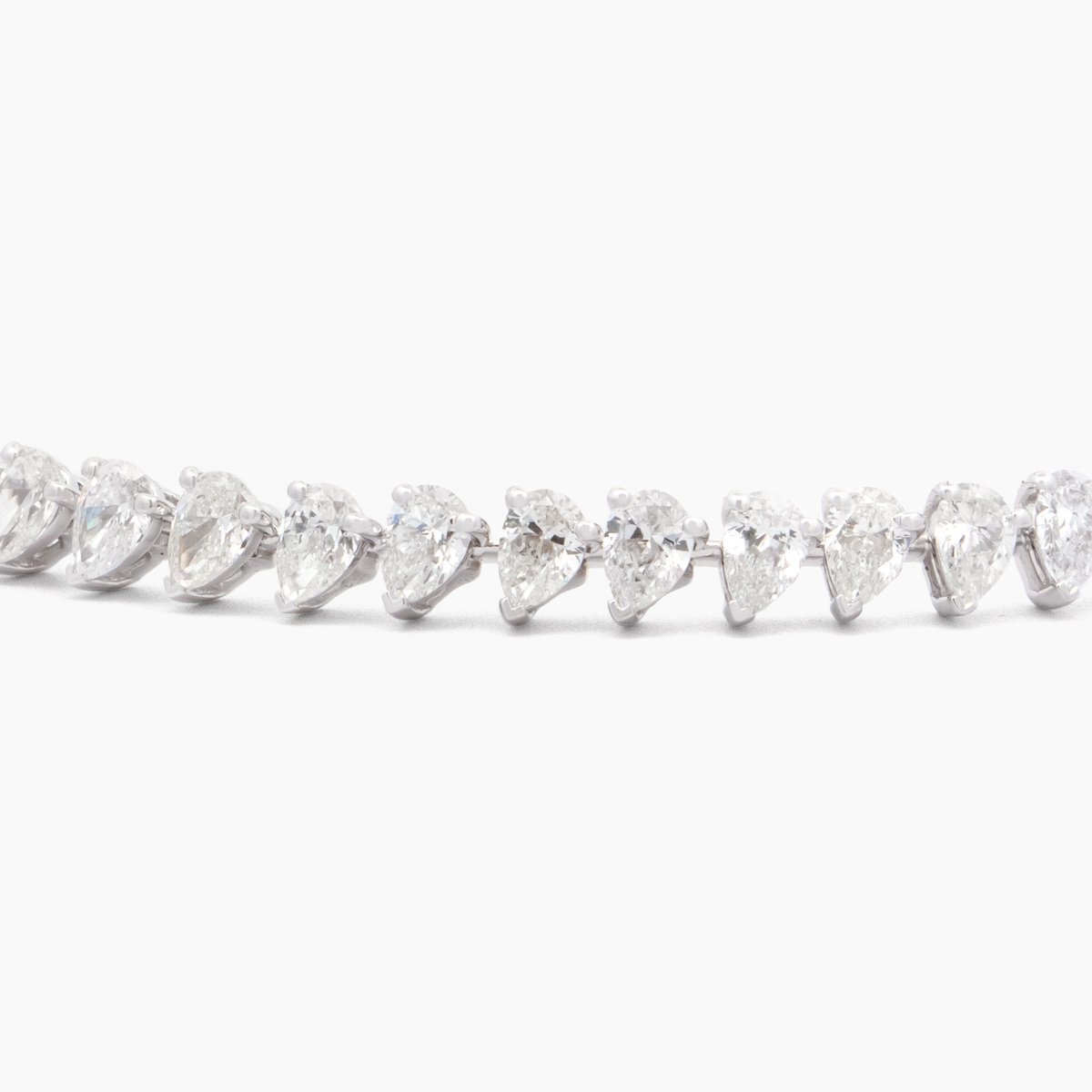 A refined tennis bracelet featuring pear-shaped diamonds set in a continuous loop. Each diamond above 0.4 carats is GIA Certified, available in F, G, and H colors with VS+ clarity. This bracelet is the epitome of sophistication.