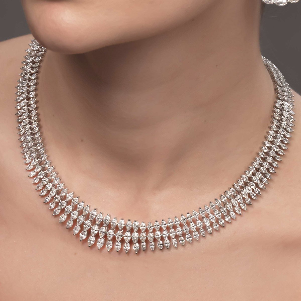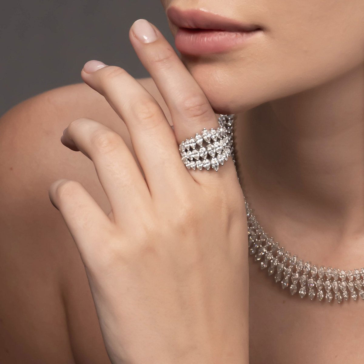 A high jewellery set featuring the timeless beauty of marquise solitaire diamonds. Each diamond above 0.3 carats is GIA Certified, chosen for its fine quality with F-H colors and VS+ clarity. This set radiates a classic elegance that transcends time.