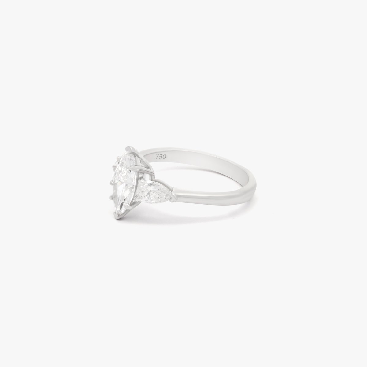 A unique marquise-shaped center diamond ring with pear-shaped side diamonds, crafted with the finest natural diamonds. Diamonds above 0.3 carats are GIA Certified.