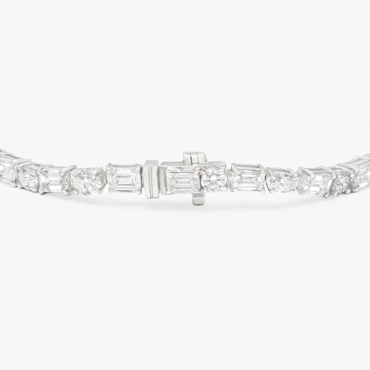 This exquisite tennis bracelet combines round and emerald-shaped diamonds, meticulously set in a graceful design. Crafted with fine quality natural diamonds, GIA Certified above 0.4 carats, with F, G & H colors and VS+ clarity.