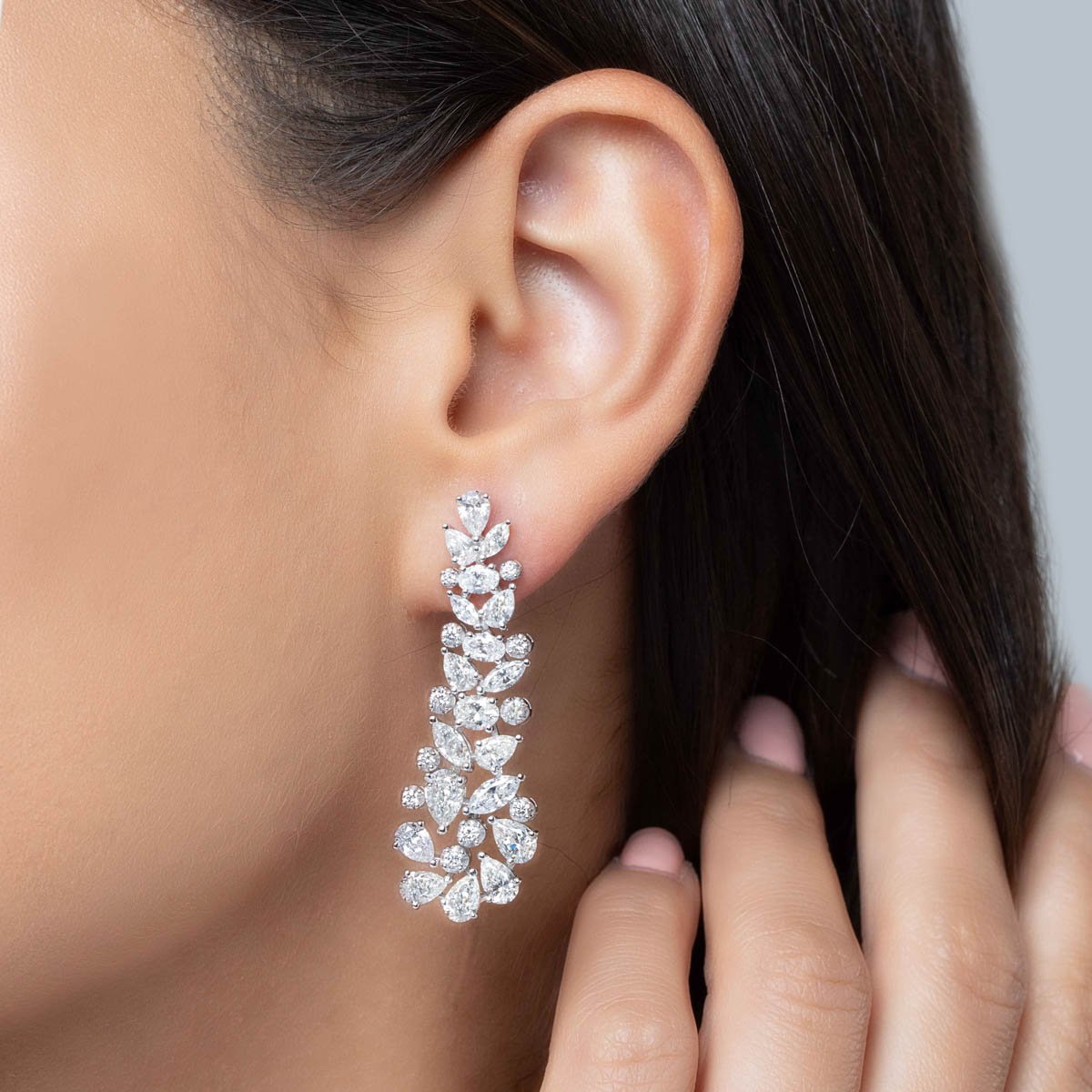 A poetic composition of pear-shaped diamonds arranged in a floral chandelier, echoing the beauty of moonlit blossoms.