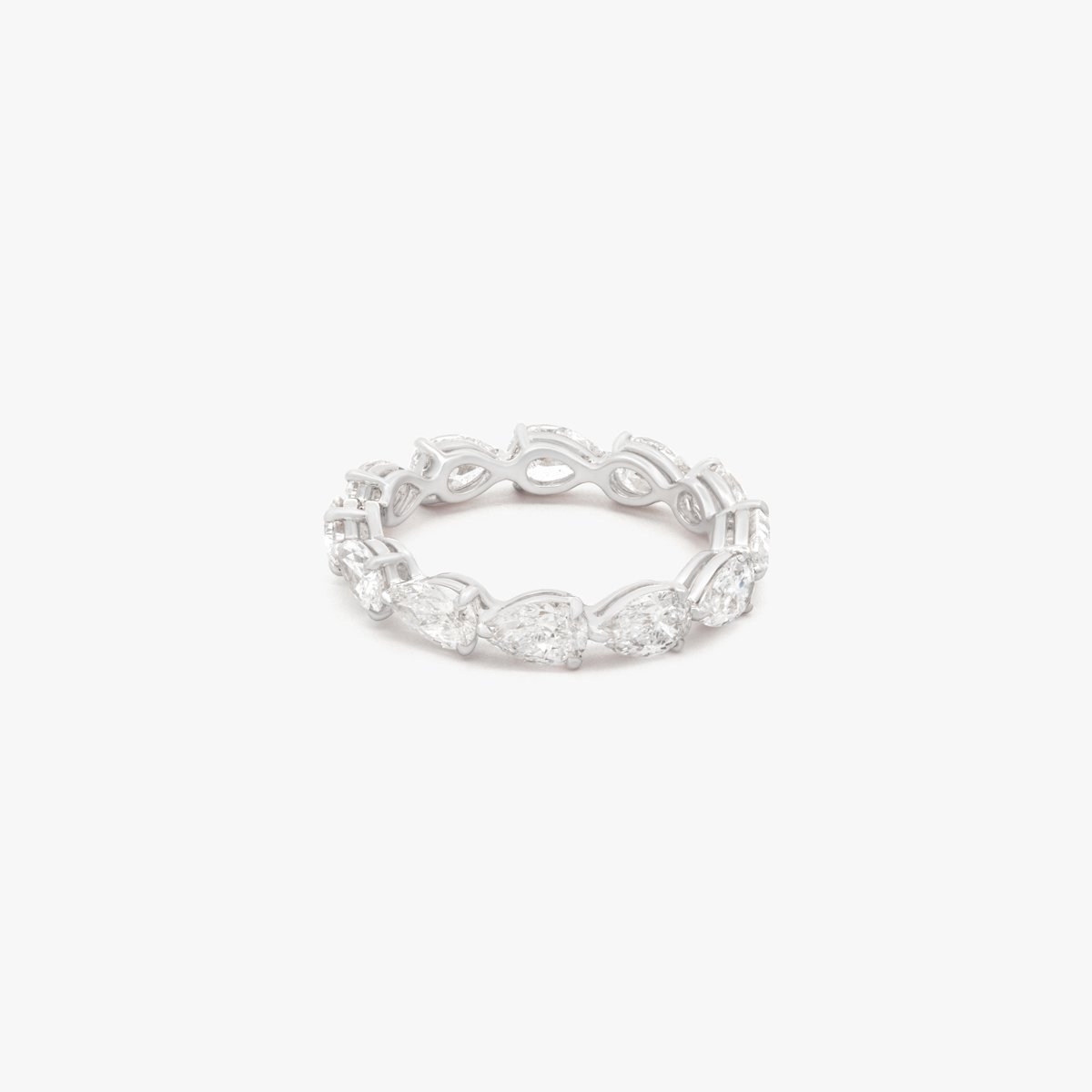 A unique eternity band ring featuring horizontally set pear-shaped diamonds, showcasing the brilliance of natural diamonds. Diamonds above 0.3 carats are GIA Certified.