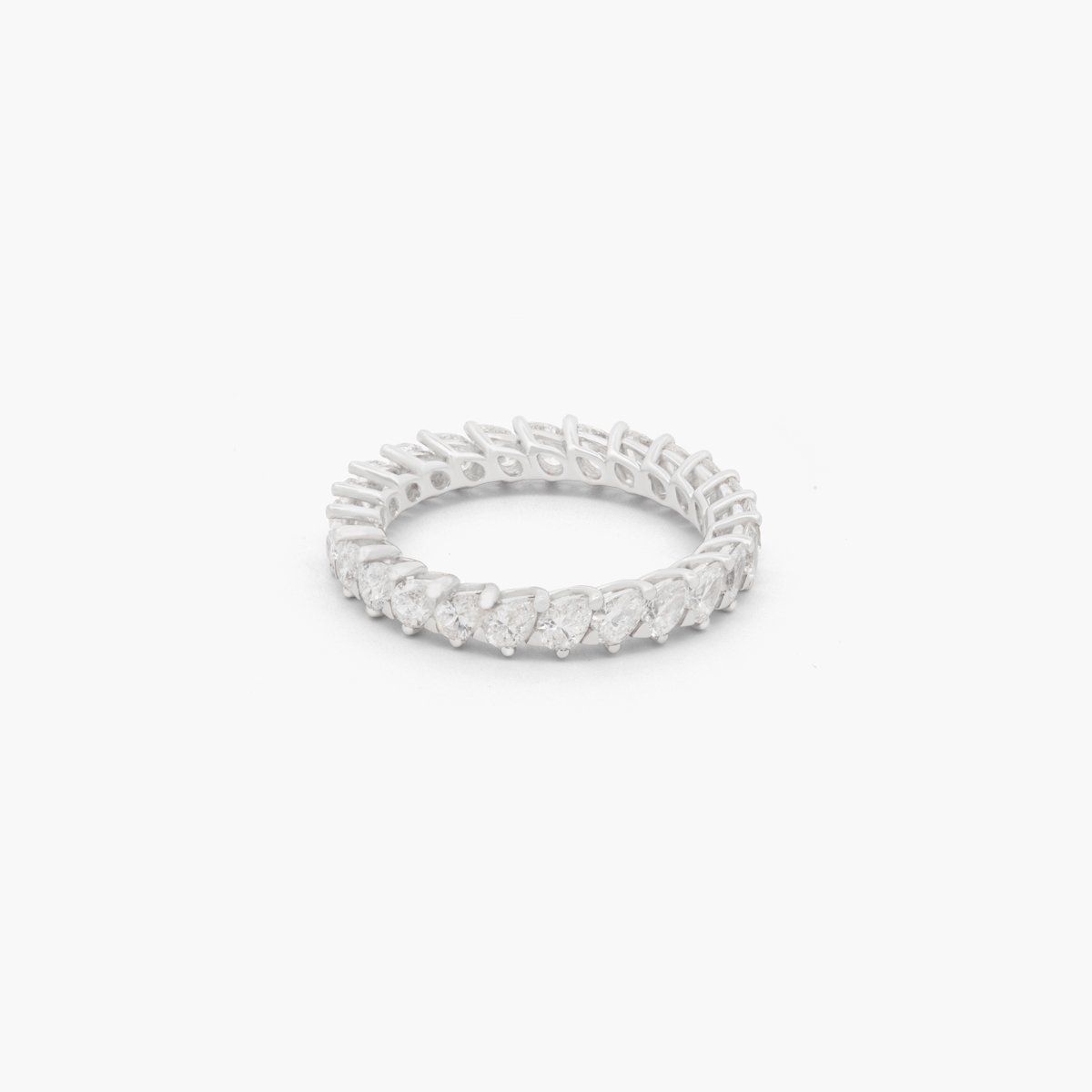 A stunning eternity band ring featuring side-set pear-shaped diamonds, crafted with the finest natural diamonds. Diamonds above 0.3 carats are GIA Certified.
