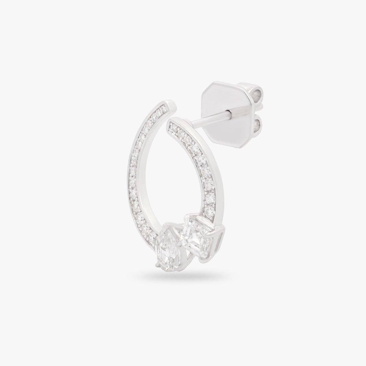 Stunning half-hoop earrings made of princess, pear, and round-cut diamonds. Each diamond above 0.3 carats is GIA Certified, showcasing exquisite clarity.