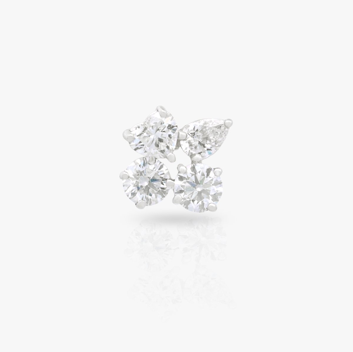 Stud earrings are made of two round, pear, and heart-shaped diamonds. Each diamond above 0.3 carats is GIA Certified, offering exceptional brilliance.