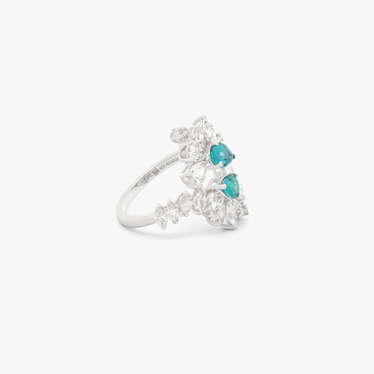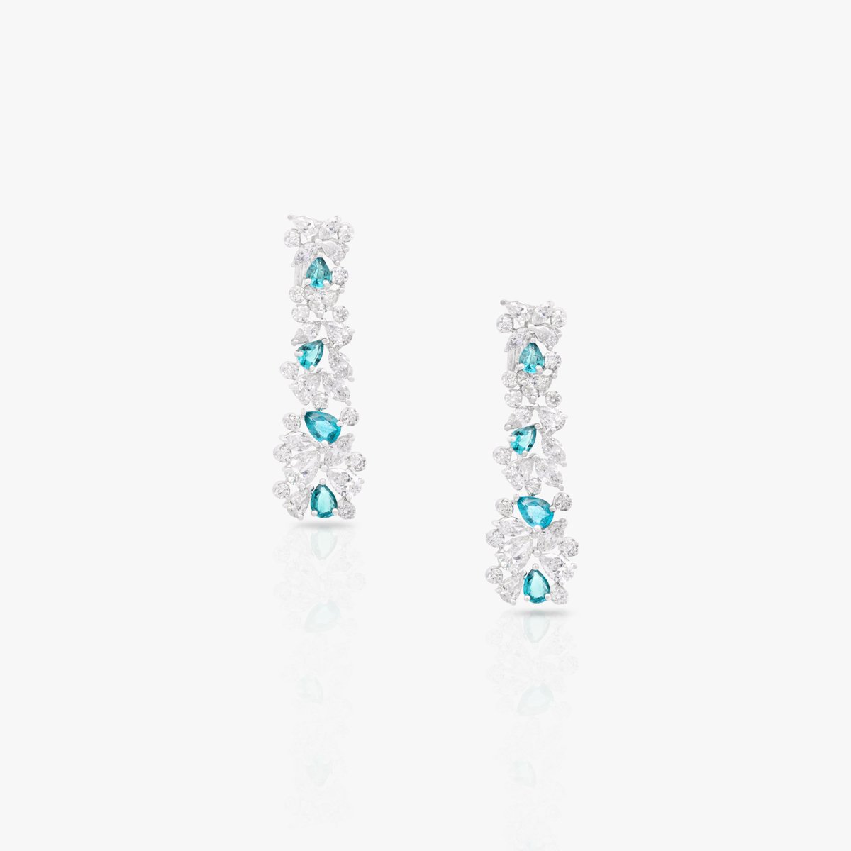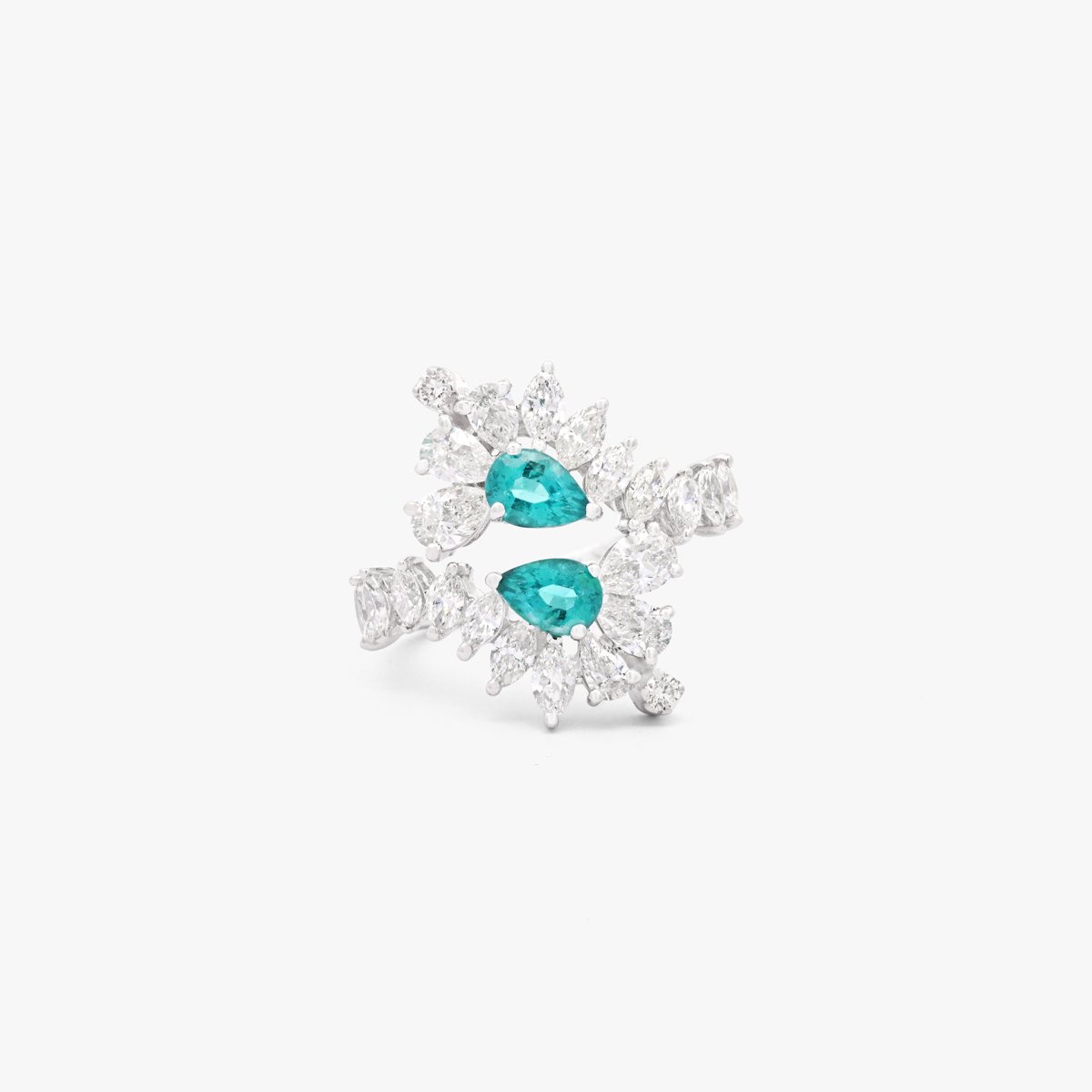 A unique set featuring the captivating blue-green hue of Paraiba tourmaline gemstones paired with white diamonds. Each diamond above 0.3 carats is GIA Certified, ensuring top-notch quality and brilliance. F, G, and H colors with VS+ clarity.