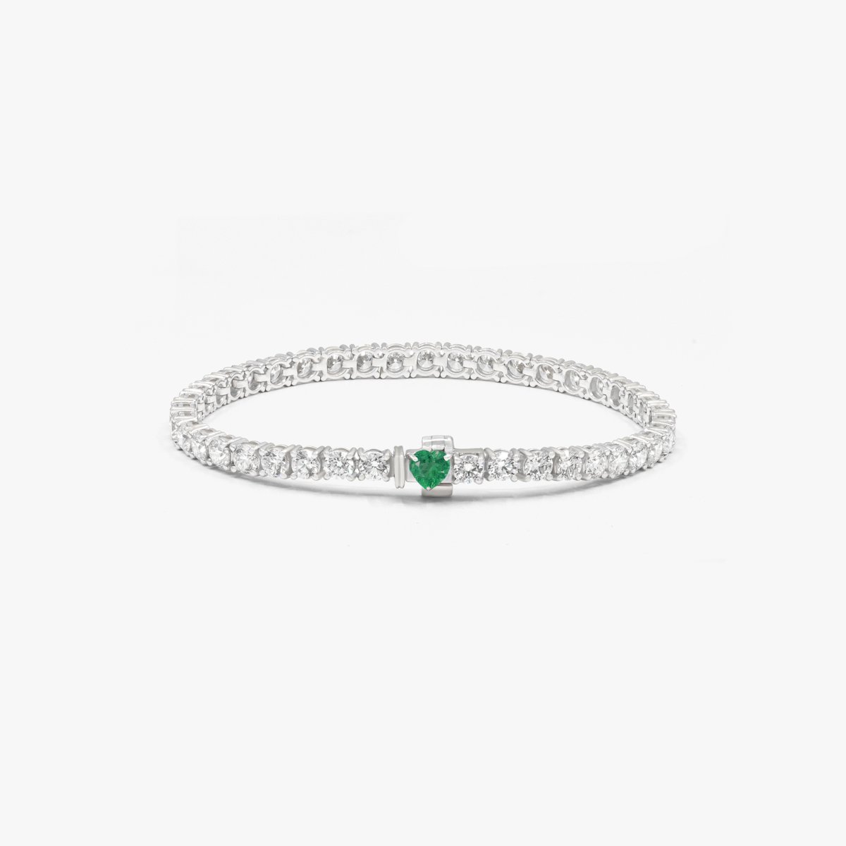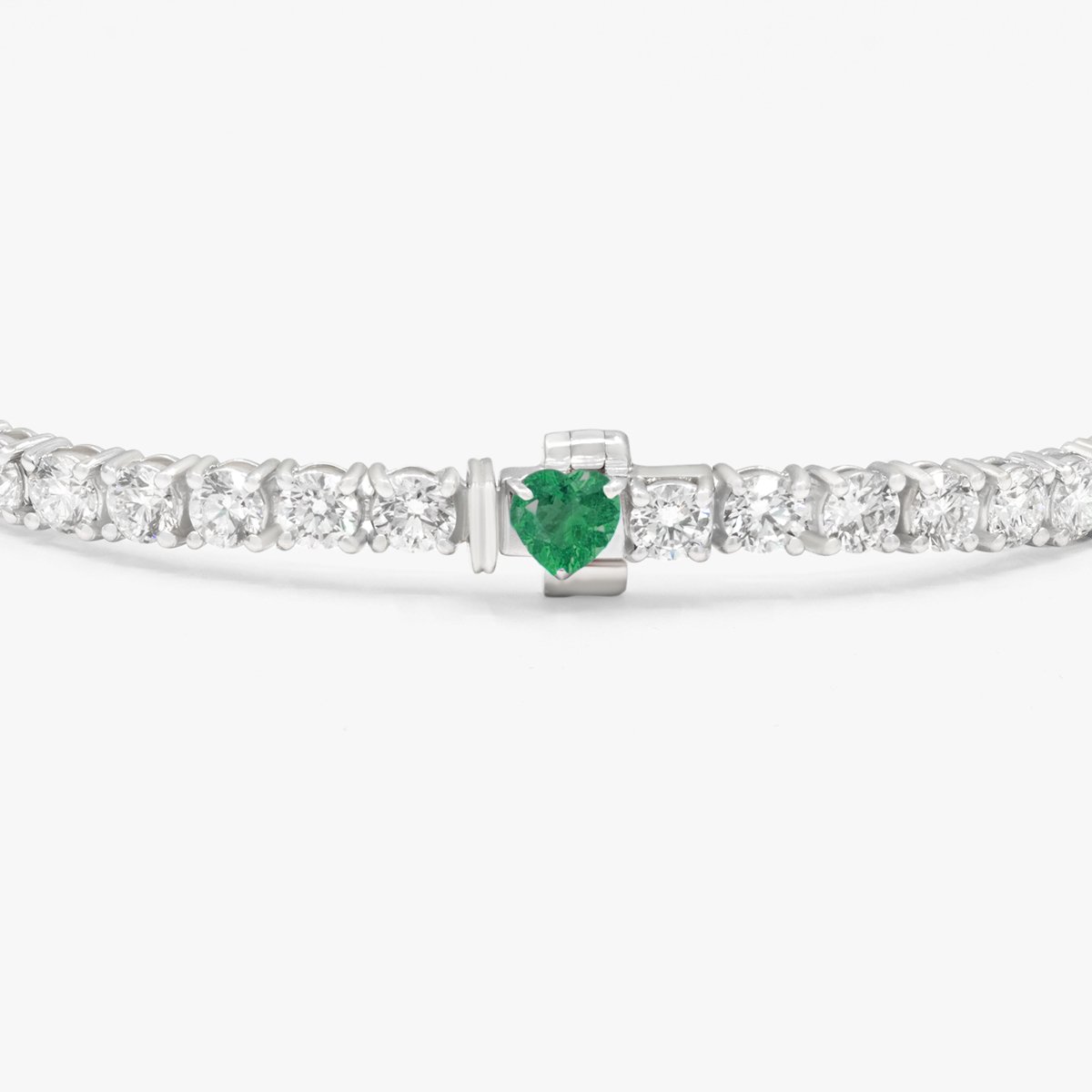 A luxurious round-shaped tennis bracelet featuring a green emerald heart lock, crafted with the highest quality natural diamonds. Each diamond above 0.4 carats is GIA Certified, with F, G & H colors and VS+ clarity.
