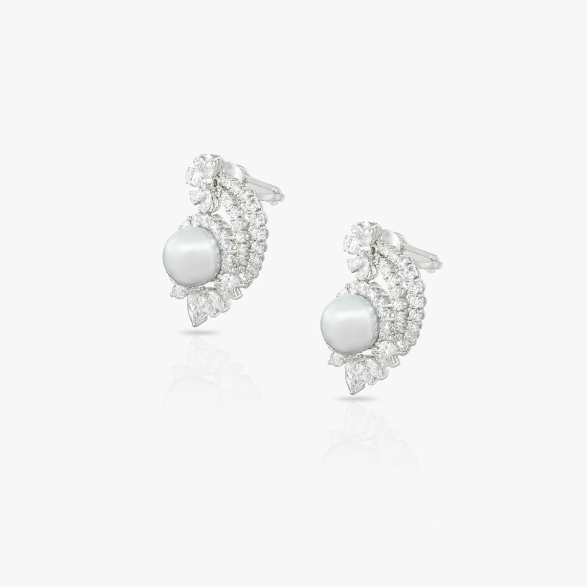 Luxurious earrings featuring fine-quality natural diamonds and South Sea pearls. These stunning pieces boast an array of exceptional diamonds, creating a breathtaking display of elegance. Each diamond above 0.3 carats is GIA Certified. F, G, and H colors with VS+ clarity.
