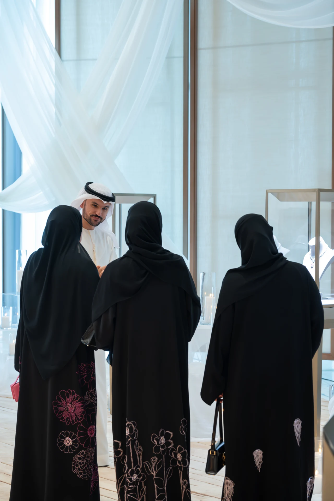 Alongside Tamur, four new creations graced the room: The Royal Verse, where regal elegance meets heartfelt grace; Merge of Love, a celebration of unity and shared emotion; Noble Grace, capturing refinement in every gesture; and Heart Whispers, a delicate symphony of tender moments translated into diamonds and gemstones. Each collection breathed with its own soul yet harmonized with the others, creating a living dialogue across the room.